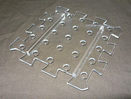 | 【仕様】 | 1cmの丸穴を規則列にて加工。 高さ1.2cmの脚の接着固定にて、全高1.5cmになります。 |