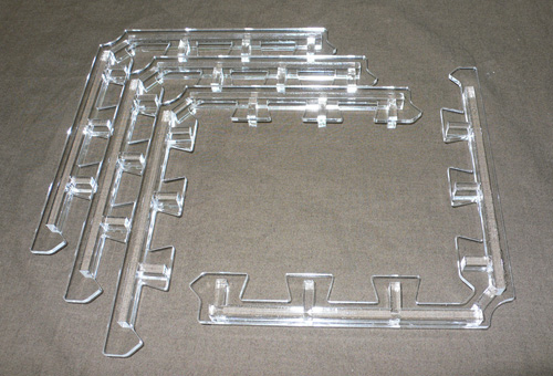 | お客様のご依頼により設計しました。 メンテナンスを考え分割式になってます。※写真は15cm規格 ![]() 飼育ケース内寸に合うよう、下記エンドパーツにて寸法調整してます。 |