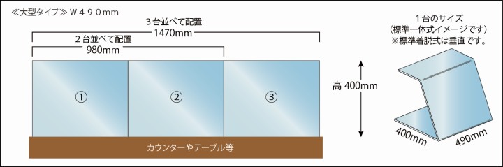 ≪大型タイプ 標準着脱式(垂直90度)≫W490mm |